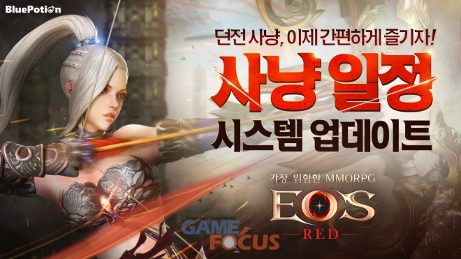 블루포션게임즈(대표 신현근)가 자사에서 직접 개발하고 서비스하는 모바일 정통 MMORPG '에오스 레드'의 신규 시스템 '사냥 일정'을 업데이트했다.