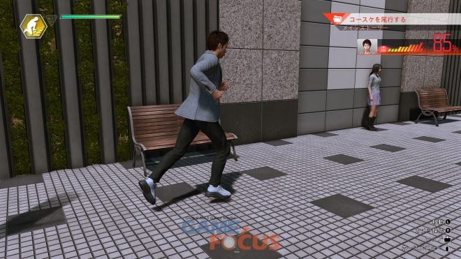 조사의 목표물이 되는 인물의 행동을 밝혀내기 위해 필요한 탐정의 기본 행동이 '미행'. 주위 환경에 조화되어, 상대가 경계를 해제하게 만드는 신 액션 '눈속임 액션'을 잘 이용하여 타겟의 눈을 속이자.