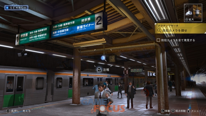 인물 및 증거 탐색 등, 온갖 장면에서 필요한 중요 조사 액션 '서치 모드'. 이번 작품에서는 사건 현장뿐만 아니라 역의 플랫폼이나 학교 등 다양한 장소에서 사용한다.