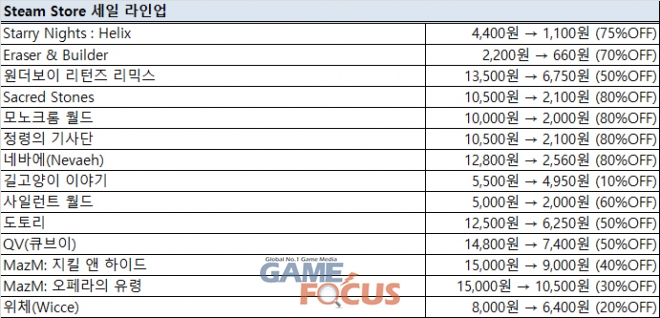 - 스팀 세일 라인업