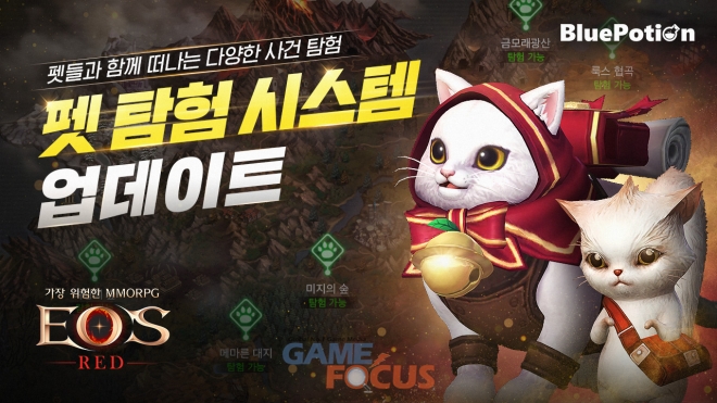 블루포션게임즈(대표 신현근)가 자사에서 직접 개발하고 서비스하는 모바일 정통 MMORPG '에오스 레드'의 신규 시스템 '펫 탐험 시스템'을 업데이트했다.