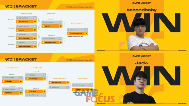 먼저 첫 날인 24일에는 ‘SECONDBABY’가 첫 번째 진출자로 이름을 올렸다. 지난 예선에서 고배를 마시고 올해 재도전한 ‘SECONDBABY’는 전년도 출전자 ‘HWAN’과 신규 도전자 ‘Zzi_Soong’ 등 떠오른 다크호스들을 꺾고 ‘SWC2021’ 지역컵 진출권을 먼저 거머쥐었다.