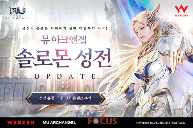웹젠은 오늘(7월 26일) '뮤 아크엔젤'에 '솔로몬 성전'을 포함해 '성전 유물'과 '장비 극한 진화' 등 각종 콘텐츠를 도입하고, 업데이트를 기념한 이벤트를 시작한다고 밝혔다.