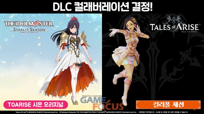 반다이남코 엔터테인먼트 코리아(대표 제랄드 누난)는 PlayStation4, STEAM 플랫폼 아이돌 프로젝트 프로듀스 게임 ‘아이돌마스터 스탈릿 시즌(한국어 번역판)'과 '테일즈 오브 어라이즈'의 DLC 컬래버레이션이 결정되었다고 밝혔다.