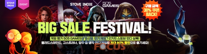 스토브 인디는 505 게임즈의 작품들을 출시하며 이를 기념해 최대 80%의 할인 이벤트와 대상 게임 구매 금액의 30%를 쿠폰으로 돌려주는 이벤트를 진행한다. 지난 25일에 출시된 게임의 경우 내달 15일까지, 내달 1일 출시 예정인 게임들은 22일까지 할인가가 적용될 예정이며 30% 쿠폰은 스토브 인디의 다양한 인디 게임을 구매하는 데 자유롭게 사용 가능하다. 스토브 인디는 이용자들에 검증을 마친 인기 게임을 최저가로 구매할 수 있는 기회를 제공하고, 동시에 스토브 인디 커뮤니티를 통해 플레이 이벤트와 추가 할인 쿠폰 지급 등을 진행한다.