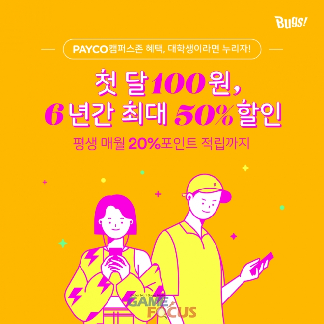 벅스는 대학생활 내내 안정적이고 실질적인 혜택을 제공하는 프로모션을 실시한다. ▲페이코 앱에서 '페이코 캠퍼스존' 인증 후 ▲벅스의 음악 상품 '모바일 무제한 듣기', '무제한 듣기', '무제한 듣기+오프라인 재생' 중 하나의 이용권을 선택해 ▲페이코로 자동결제한 대학생을 대상으로 한다.