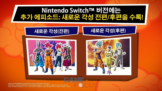 또한 본 작품에는 PS4, Xbox One, PC(STEAM) 버전에서 호평 판매 중인 유료 추가 DLC '추가 에피소드: 새로운 각성(전편/후편)' 2종을 수록했다. '드래곤볼 Z'의 스토리를 더 깊이, 언제 어디서나 즐길 수 있다.