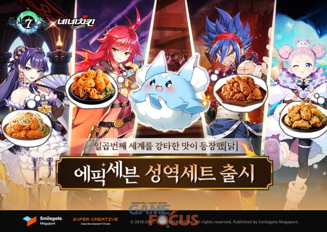 스마일게이트 메가포트(대표 장인아)가 서비스하고 슈퍼크리에이티브(김형석, 강기현 공동대표)가 개발한 글로벌 히트 모바일 RPG '에픽세븐'이 치킨 브랜드 '네네치킨'과 함께 컬래버레이션 상품 '에픽세븐 성역 세트' 4종을 출시하고 이를 기념한 이벤트를 개최한다고 9일(목) 밝혔다.