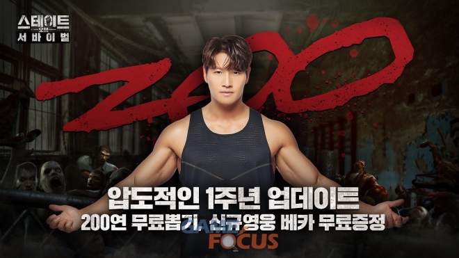 김종국 홍보 영상 공개와 함께 다양한 1주년 기념 이벤트도 진행된다. 우선, 접속만 하더라도 200회 연속 무료 뽑기가 가능하며, 공식 카페 내 1주년 축하 게시판에 메시지를 전달하는 '1주년 공모전 이벤트', 김종국의 모습을 SNS에 공유한 유저에게 신세계상품권, 자원 아이템을 증정하는 '홍보모델 공유 이벤트', 서비스 1주년 동안 가장 최고의 순간을 공유하는 '스테이트 오브 서바이벌 최고의 순간' 등 풍성한 이벤트가 준비되었다.
