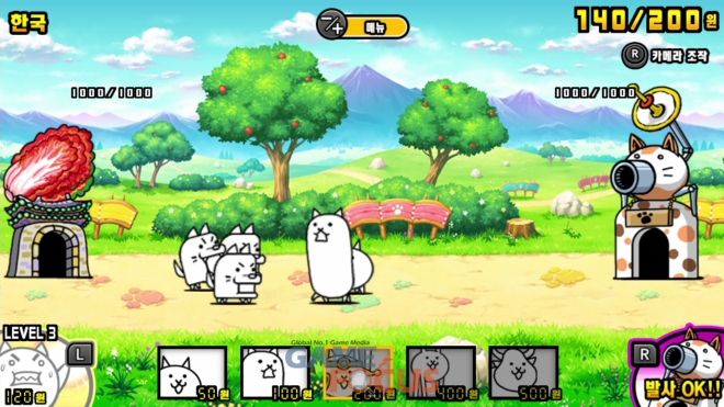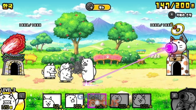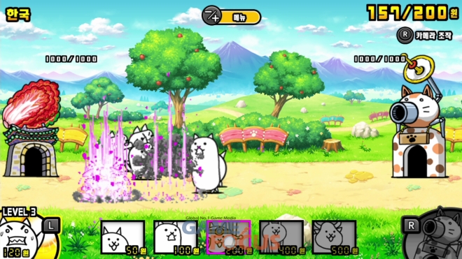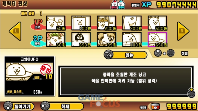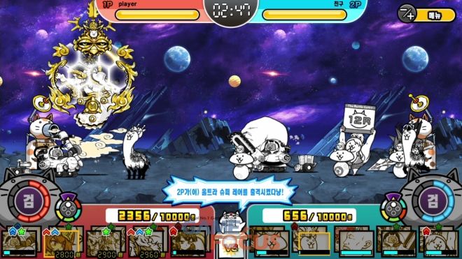 화면 왼쪽 아래의 '일 고양이'로 지갑 사이즈를 늘리면, 머니가 모이는 속도나 소지할 수 있는 머니의 양이 증가하여 배틀이 유리해진다. 전황을 보며 '일 고양이'의 지갑 사이즈도 적극적으로 늘려보자.