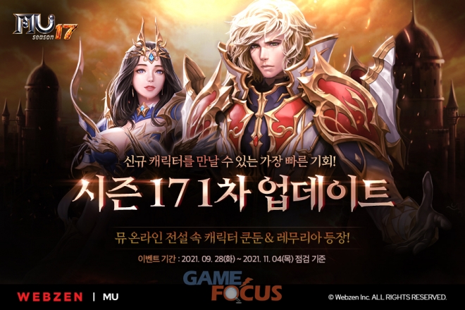 웹젠은 오늘(9월 28일) '뮤 온라인'의 역사 속 인물인 '쿤둔 메피스'와 '레무리아' 클래스 2종을 추가하는 신규 업데이트를 적용하고, 이 캐릭터들을 가장 먼저 만나볼 수 있는 스피드 서버를 운영한다.