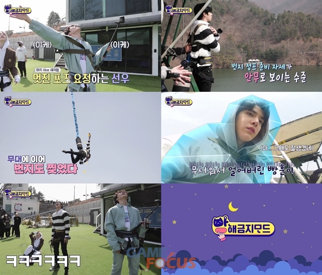 이날 공개된 영상 속 더보이즈 주연과 영훈은 번지점프를 대하는 극과 극 모습으로 웃음을 선사했다. 첫 도전자로 나선 주연은 망설임 없이 곧장 하강했을 뿐만 아니라 포즈까지 취하는 여유로움을 보여 모두를 놀라게 했다. 반면 영훈은 잔뜩 겁먹은 표정으로 번지대에 올라 현장을 웃음바다로 만들었다. 과연 영훈이 무사히 번지점프를 성공할 수 있을지 향후 공개될 본편에 대한 기대감을 더한다.