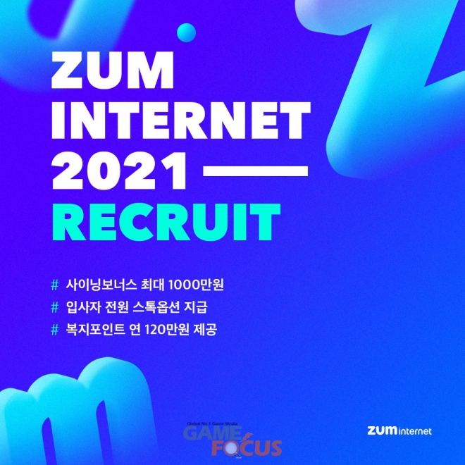 줌인터넷은 이번 채용의 최종 합격자에게 연봉 이외 최대 1천만 원의 사이닝 보너스를 지급한다. 추가로 합격자 전원에게는 스톡옵션을 부여하고, 현금처럼 사용할 수 있는 복지 포인트도 연간 120만 원 제공한다.
