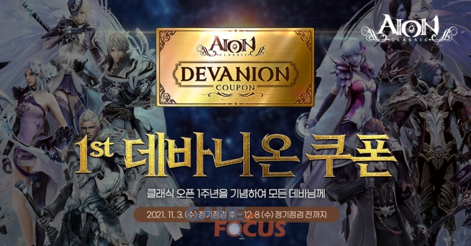 아이온은 12월 8일까지 2.0 업데이트 페이지에서 '1st 데바니온 쿠폰' 2종을 제공한다. 해당 쿠폰은 11월 10일부터 12월 15일까지 쿠폰함에서 등록해 사용할 수 있다.
