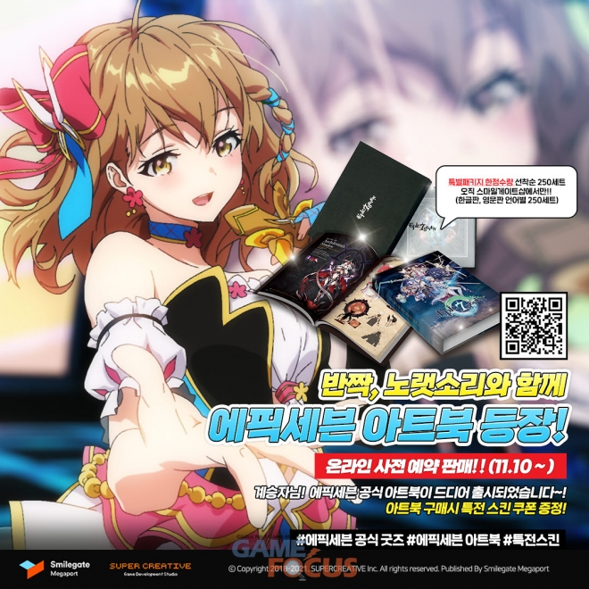 스마일게이트 메가포트(대표 장인아)가 서비스하고 슈퍼크리에이티브(김형석, 강기현 공동대표)가 개발한 글로벌 히트 모바일 RPG '에픽세븐'이 에픽세븐 아트웍의 모든 것을 담은 아트북을 발매 했다고 11일(목) 밝혔다.