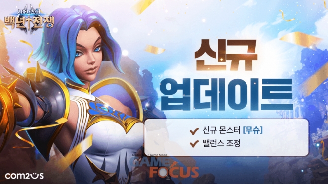 백년전쟁은 서머너즈 워 IP를 활용해 제작된 모바일 게임으로, 세계관 속 수많은 몬스터들로 구성된 자신만의 덱을 통해 치열한 카운트 스킬 공방을 펼치는 실시간 전략 대전 게임이다. 컴투스는 강력한 스킬 효과를 보유한 신규 몬스터를 추가하며 게임에 한층 다양한 전략 구성의 재미를 제공한다는 계획이다.