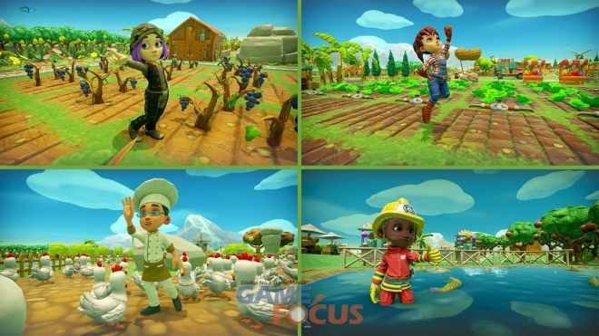비공개로 설정하여 농장을 혼자만의 것으로 만들거나, 또는 마음이 통하는 동료들과 함께 작업하거나, 전체 공개하여 모르는 플레이어들과 대농장을 만드는 등, 4인이 분할 화면으로 로컬 플레이를 다양하게 즐길 수 있다.