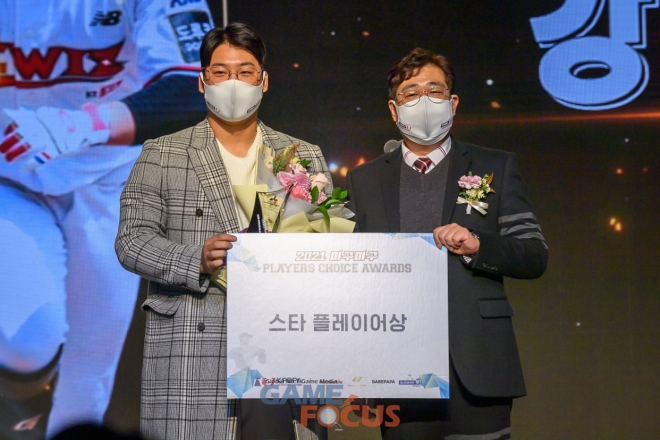 '스타 플레이어'는 모바일 야구게임 '마구마구2021' 이용자들이 올해의 선수를 투표로 결정하는 것으로, '플레이어스 초이스 어워즈'에서 유일하게 야구 팬들이 수상자를 정하는 부문이다.