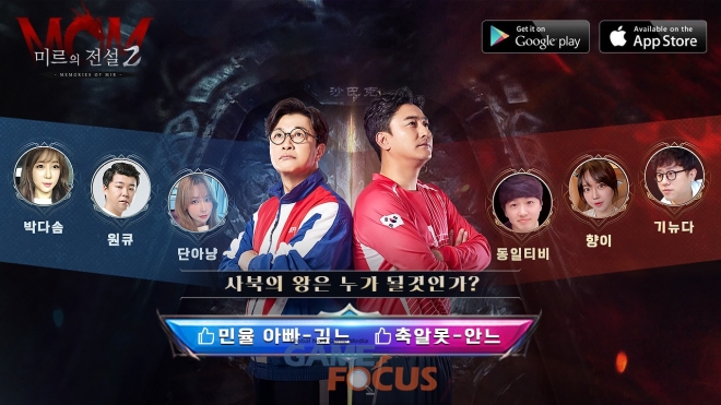 이밖에 오는 12월 7일 론칭 당일에는 아프리카TV에서 ‘기뉴다’, ‘향이’, ‘동일티비’, ‘박다솜’, ‘원큐’, ‘단아냥’ 등 6명의 인기 인플루언서가 출연해 미르의 전설2 대표 콘텐츠인 사북성 쟁탈 PK 대전을 펼칠 계획이라고 밝혔다.