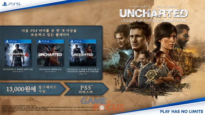 소니인터랙티브엔터테인먼트코리아(SIEK)는 PS5 플랫폼으로 리마스터되고 시리즈 최초로 PC로 찾아오는 'UNCHARTED: 레거시 오브 시브즈 컬렉션'의 PS5 버전을 2022년 1월 28일(금) 출시한다. 본 컬렉션에는 네이선 드레이크가 다시 예전의 모습으로 돌아가 극적인 모험에 나서는 'UNCHARTED 4: 해적왕과 최후의 보물'과 한 때 악당이었던 인물이 동료로 활약하는 모습을 보여주는 'UNCHARTED: 잃어버린 유산'이 포함된다. PC 버전에 대한 세부사항은 추후 공개될 예정이다.