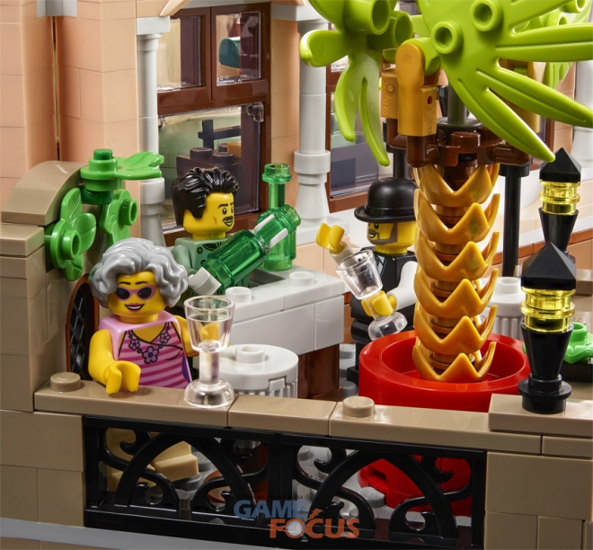 호텔의 실내외 공간은 로비, 테라스, 객실, 펜트하우스, 지붕 등 5개로 나눠 섬세하게 표현했다. 입체파 작품을 감상할 수 있는 로비 갤러리, 독특한 디자인 가구를 갖춘 객실, 돔과 스카이라이트로 장식된 지붕 등 실제 호텔 못지않게 사실적인 요소들을 살펴볼 수 있다. 기존 모듈러 세트의 상징적인 디테일을 곳곳에서 만날 수 있는 '이스터 에그'도 이번 제품만의 묘미다.