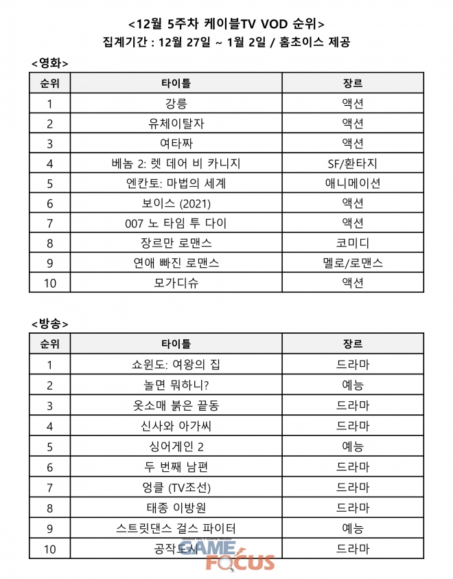 '강릉'과 '쇼윈도: 여왕의 집'이 각각 영화, 방송 케이블TV VOD 순위 1위를 기록했다.
