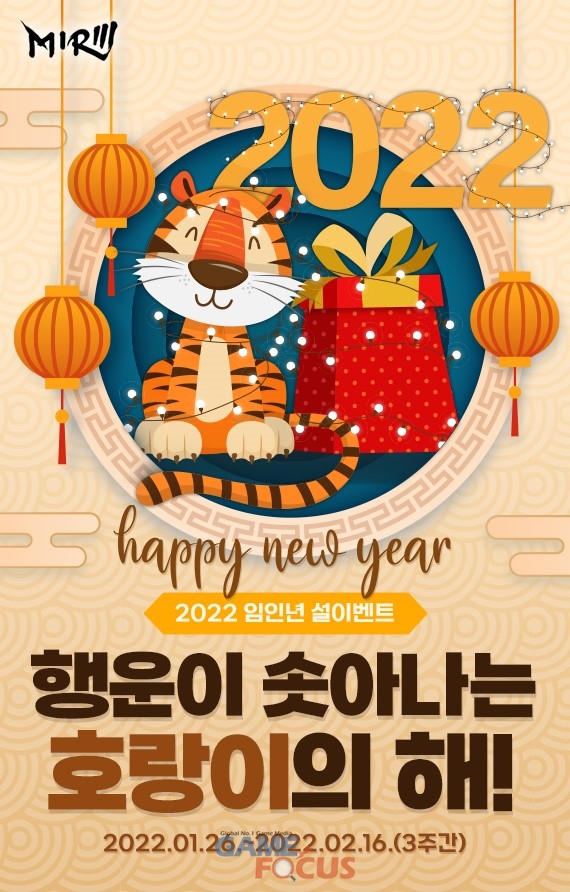 온라인게임 '미르의 전설3'에서는 2월 16일(수)까지 시공던전의 시작지점 주변에서 등장하는 임인년호랑이를 처치하면 확률에 따라 미로뽑기 이벤트 참여 시 사용할 수 있는 임인년 쿠폰을 얻을 수 있다. 비천현 NPC 신우를 찾아가면 마비의 반지 등 다양한 보상에 도전할 수 있는 임인년 미로뽑기에 참여할 수 있다.