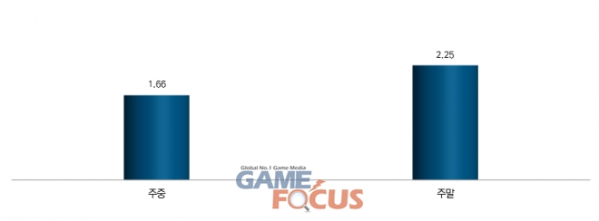 청소년 게임이용자들이 21년 하루 평균 플레이 시간은 주중 2.53시간 주말 2.88시간으로 일반이용자 주중 1,66시간 주말 2.25시간보다 높게 나타났다.