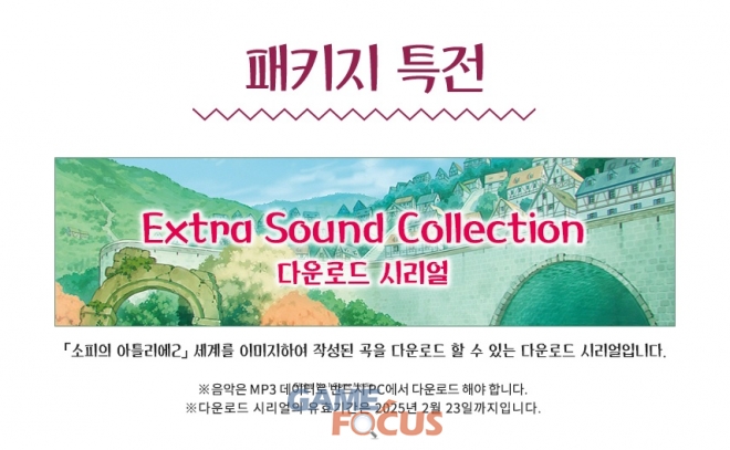 PlayStation4와 Nintendo Switch의 패키지판 특전으로 '소피의 아틀리에2' 세계를 게임 이외에서도 즐길 수 있는 다운로드 시리얼이 증정된다.