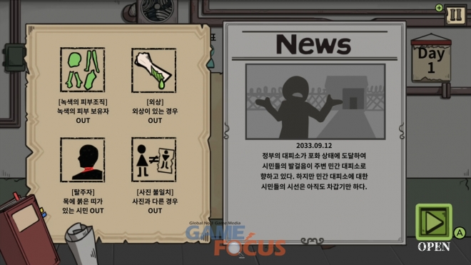 본 작품은 플레이어가 민간 대피소의 심사관이 되어, 대피소 게이트로 찾아오는 시민들을 대상으로 관찰 및 여러 질문을 통해 좀비 바이러스 감염 여부를 유추해 통과시킬지, 거절할지 결정해야 한다. 또한, 뉴스를 통해 좀비를 판별할 수 있는 정보나 신문에 실린 내용을 주의 깊게 점검해, 생존자를 놓치지 않도록 신중한 결단을 내려야 하는 게임이다.
