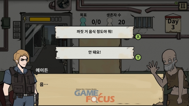 에이든은 과연 좀비를 배제하고, 대피소의 안전을 지켜낼 수 있을 것인가.