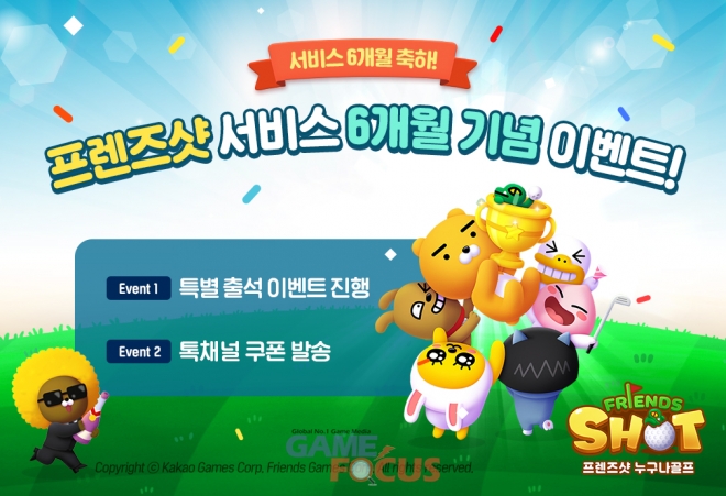 ㈜카카오게임즈(대표 조계현)는 28일, 자사가 서비스 중인 캐주얼 모바일 게임 ‘프렌즈샷: 누구나골프’의 서비스 6개월 기념 이벤트를 실시한다.