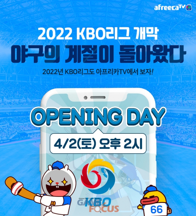 아프리카TV가 2022 KBO리그의 시범경기부터 정규, 포스트 시즌까지의 경기를 모두 생중계한다.
