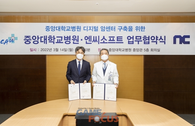 엔씨소프트(대표 김택진, 이하 엔씨(NC))가 중앙대학교병원(병원장 이한준, 이하 중앙대병원)과 '디지털 암 관리센터(D-CAM 센터)' 구축을 위한 업무협약을 체결했다.