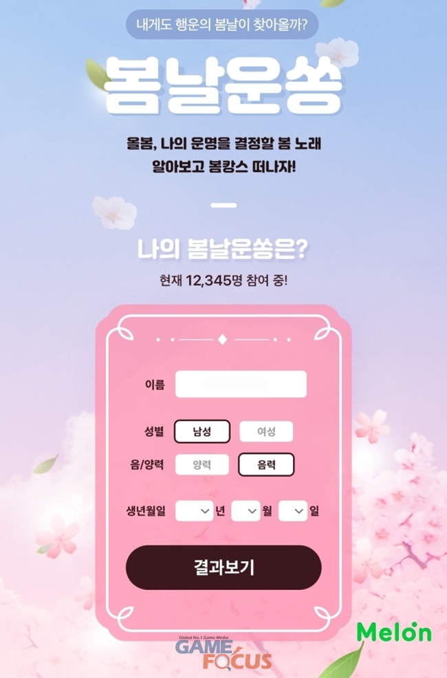 카카오엔터테인먼트 조은영 멜론서비스본부장은 "만물이 소생하는 봄은 그 특유의 기운과 어울리는 히트곡을 매년 탄생시켜 왔다"며 "멜론에선 나와 어울리는 봄 노래를 운세 풀이 형태의 이벤트로 재미나게 알아볼 수 있으니 많은 관심 부탁드린다"고 밝혔다.