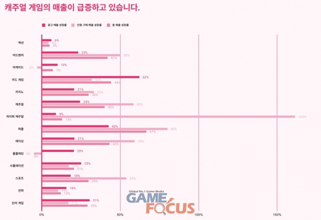 코로나19 이후 업계 내 잠재 고객의 유입도 대폭 증가했다. 게임을 플레이하는 일간 이용자 수(DAU)는 팬데믹 사태 이전보다 상승했고 2019년 초 이후 PC 및 콘솔 게임의 일간 이용자 수는 62%, 모바일게임의 일간 이용자 수는 74% 증가한 것으로 나타났다. 또 캐주얼 게임의 수와 관련 매출이 각각 13%와 40% 증가하며 게임 업계의 성장에 기여했다.