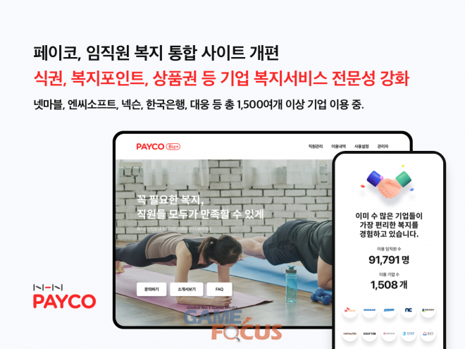 NHN페이코(대표 정연훈)는 기업 복지 솔루션 브랜드 '페이코 비즈 플러스(PAYCO BIZ+)'의 경쟁력 제고와 다양한 기업 고객의 이용 편의성 증대를 위해 브랜드 웹사이트를 전면 개편했다.