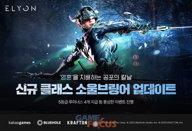 (주)카카오게임즈(대표 조계현)가 서비스하고 (주)블루홀스튜디오(대표 조두인)에서 개발한 PC MMORPG '엘리온(Elyon)'에서 6일 신규 클래스 '소울브링어' 업데이트와 함께 다양한 이벤트를 진행한다.