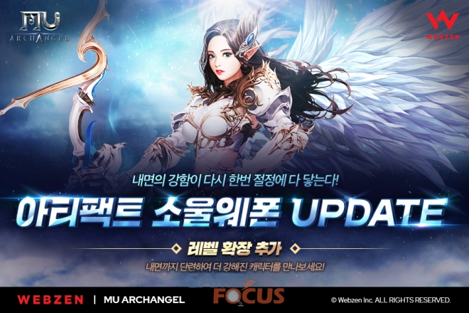 웹젠은 14일 뮤 아크엔젤의 게임 시스템에 새로운 성장 및 전투 시스템 '소울웨폰'과 마법진 활성화 '아티팩트' 시스템을 적용하고, 업데이트를 기념한 커뮤니티 이벤트를 시작한다.