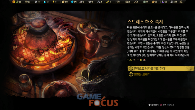다양한 사람들이 살고 있는 콜로니에서 날이 다르게 다양한 이벤트가 발생한다. 발생한 이벤트에 제대로 대처하면 식량과 자원을 손에 넣을 수도 있으며 콜로니내의 행복도가 변하기도 한다. 때로는 부상자가 나올 수도 있으니, 신중하게 선택할 필요가 있다.
