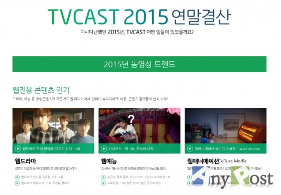 네이버TV캐스트는 2015년 한 해 동안의 동영상 트렌드와 인기 영상을 소개하는 '네이버TV캐스트 연말결산 2015' 페이지(