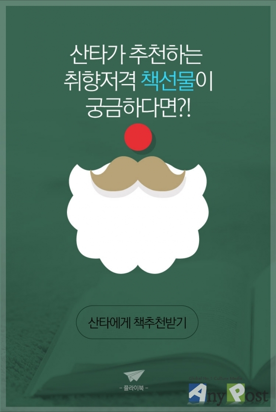 플라이북(대표 김준현, www.flybook.kr)은 오는 크리스마스를 맞아 '산타가 추천하는 책'이라는 특별한 이벤트를 진행한다.