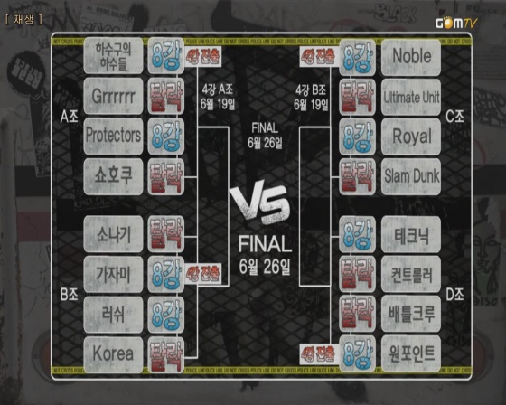 첫 경기에서는 떠오르는 일대일 공격 위주의 아이솔레이션 전술 팀 ‘Protectors’와 이에 맞서 밀착 지역방어 전술을 펼친 지난 시즌 최종 우승자 ‘하수구의하수들’의 박빙 승부가 펼쳐졌다. 경기가 막바지에 이를 때까지 승패를 예측할 수 없을 만큼 쫓고 쫓기는 승부가 이어졌으나, <Rush> 선수의 결정적인 다이빙캐치와 가로채기로 한 순간에 분위기가 역전되어 ‘하수구의하수들’이 4점수 차로 승리하였다.