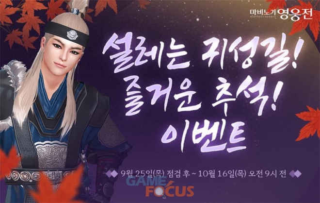 ‘마비노기 영웅전’은 ‘설레는 귀성길! 즐거운 추석!’ 이벤트를 10월 16일까지 실시한다. 레이드 완수 시 ‘추석맞이 용돈 주머니’를 획득할 수 있으며, 교환상점에서 ‘빛나는 머리 장식’, ‘와드네의 결정 상자’, ‘추석만 되면 과식하는 사람 타이틀’ 등 다양한 보상으로 교환할 수 있다.