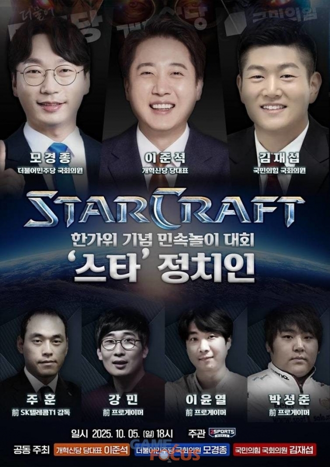 5일 서울 소재 PC방에서 진행될 예정인 이번 행사는 개혁신당 이준석 당대표가 더불어민주당 모경종 의원, 국민의힘 김재섭 의원에게 직접 제안해 성사된 대회다. 우리나라 국민들에게 친숙한 게임 '스타크래프트'가 일명 '민속놀이'로 불리우는 것에서 착안, 전 '스타크래프트' 프로게이머들과 감독들을 섭외해 팀을 이뤄 의원들이 대결하며 교류의 장을 열고자 기획됐다.