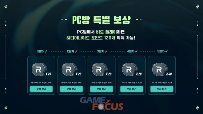 비토의 출시를 기념해 오는 28일(일)까지 ‘비토 출석체크 이벤트’가 진행된다. 이번 이벤트는 집이나 PC방 어디서든 하루 한 번만 플레이하면 참여가 가능하며 일반전, 경쟁전, 신속 플레이 모드에서 모두 참여할 수 있다. 이벤트 참여자들은 누적 출석 일수에 따라 다양한 선착순 보상을 받을 수 있다. 특히 PC방에서 참여 시 최대 120개의 레디어나이트 포인트를 추가로 획득할 수 있으며 비토 출시를 기념한 한정판 굿즈와 게임 내 아이템 쿠폰, 게이밍 기어등 풍성한 보상이 준비되어 있다.