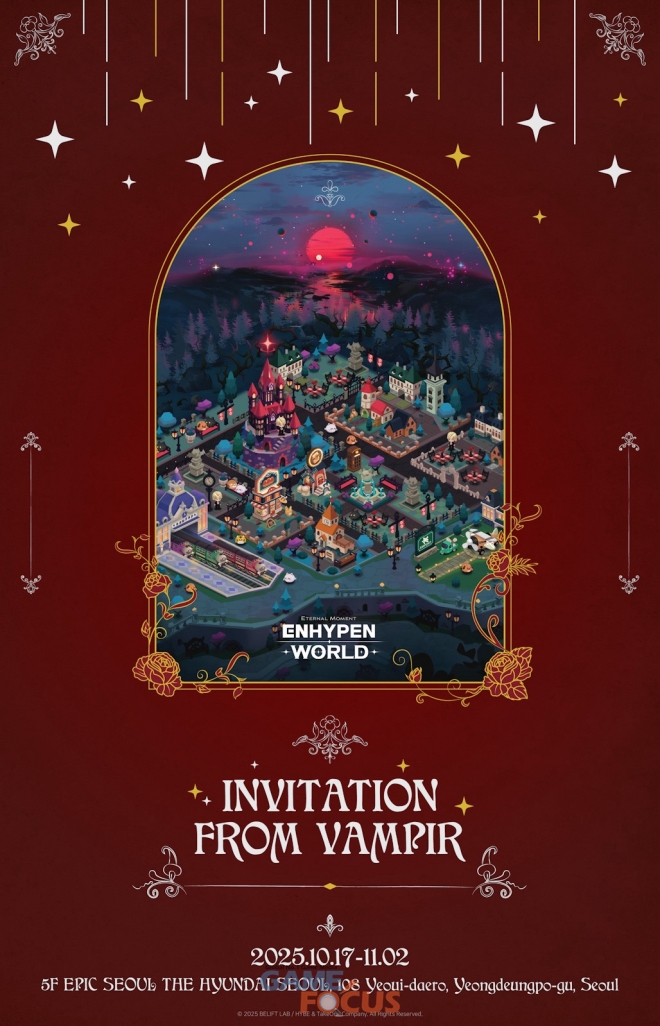 테이크원컴퍼니가 인기 아이돌 ‘엔하이픈’과 손을 잡고 제작한 첫 시네마틱 어드벤처 게임 ‘엔하이픈 월드: 이터널 모먼트’의 론칭 기념 팝업스토어 ‘인비테이션 프롬 밤피르’를 17일부터 11월 2일까지 더현대 서울 5층 에픽서울에서 전 회차 무료로 진행한다.