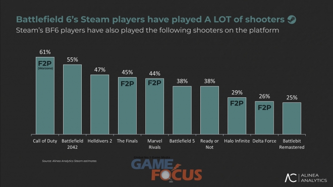 이 같은 기록을 남길 수 있었던 것은 새로운 유저층이 스팀 플랫폼을 통해 유입된 것이 주효했다고 Rhys Elliott은 설명한다. 보고서에는 현재 배틀필드6를 즐기고 있는 유저의 약 45%에 달하는 유저가 전작인 ‘배틀필드 2042’를 플레이해본적이 없는 유저이며 PS5 플랫폼 유저의 37% 역시 전작을 즐겨보지 않은 신규 유저층인 것으로 확인됐다. 다만 보고서에는 넥슨의 신작 ‘아크 레이더스’, 밸브의 ‘데드락’ ‘블랙옵스7’ 등 신규 FPS게임을 위시리스트로 추가했고 배틀필드6를 즐긴 유저의 28%의 유저층이 데드락의 테스트 빌드를 이미 플레이해본 만큼 신작 출시와 함께 현재 흥행 성과에 악영향을 끼칠 수 있다고 분석했다.
