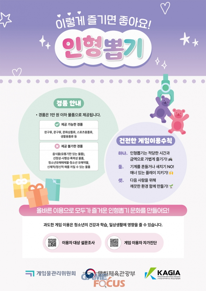 이번 캠페인은 최근 인형뽑기방이 급격히 증가하고 있는 현실을 반영하여, 이용자 보호와 안전한 게임환경 조성을 목적으로 기획되었다.
