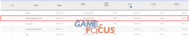<극장판 귀멸의 칼날: 무한성편>이 누적 관객 수 542만 명을 돌파하며 2025년 전체 박스오피스 2위에 등극했다. 개봉 전부터 올해 최고 사전 예매량을 기록하고, 개봉 이후 올해 가장 빠른 속도로 200만 관객 돌파, 2025년 최고 매출액 달성 등 각종 신기록을 세우며 전무후무한 흥행 신드롬을 이어가고 있다. 올해 화제작 <F1 더 무비>(520만 명)를 제치고 박스오피스 2위에 오른 데 이어, 흥행 1위 <좀비딸>(562만 명)의 기록까지 넘보고 있다.